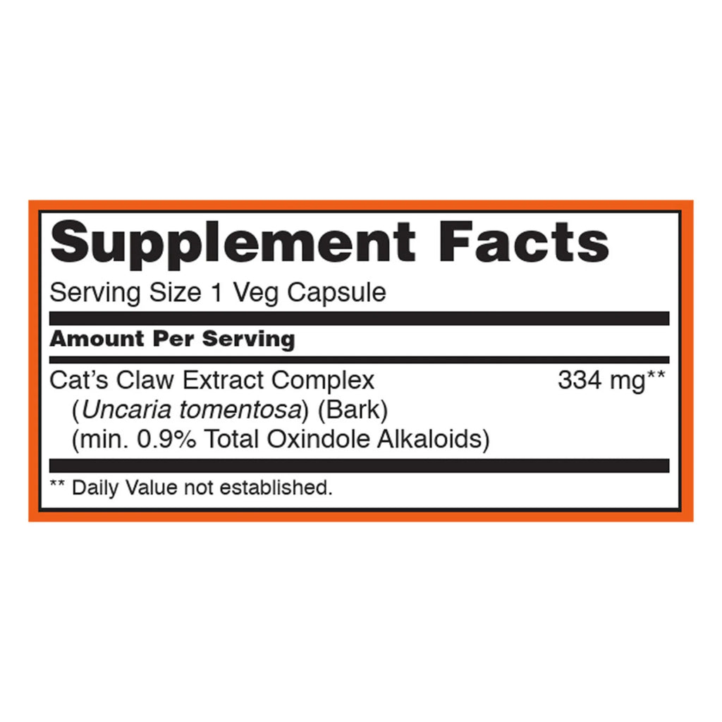 | Cat's Claw Extract (Uncaria tomentosa) (min. 0.9 % Total Oxindole Alkaloids) | 334 mg | ** |
